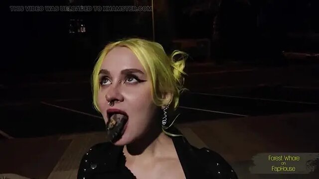 On an absolutely extreme night walk, a woman humiliates herself by swallowing multiple strangers' condoms while picking up trash and dirt. She further degrades herself by performing rough anal fisting and humiliation in public, culminating in a brutal outdoor fuck with a real stranger.