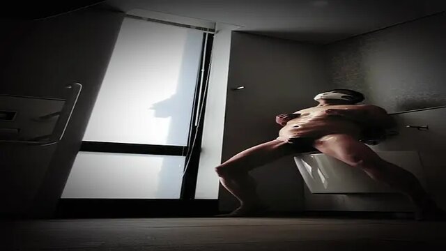 Naked Asian toyoutaku films himself jacking off in a public bathroom. He gets caught by a mysterious woman who joins him and they fuck on the spot. They both cum and he films her flashing the camera.